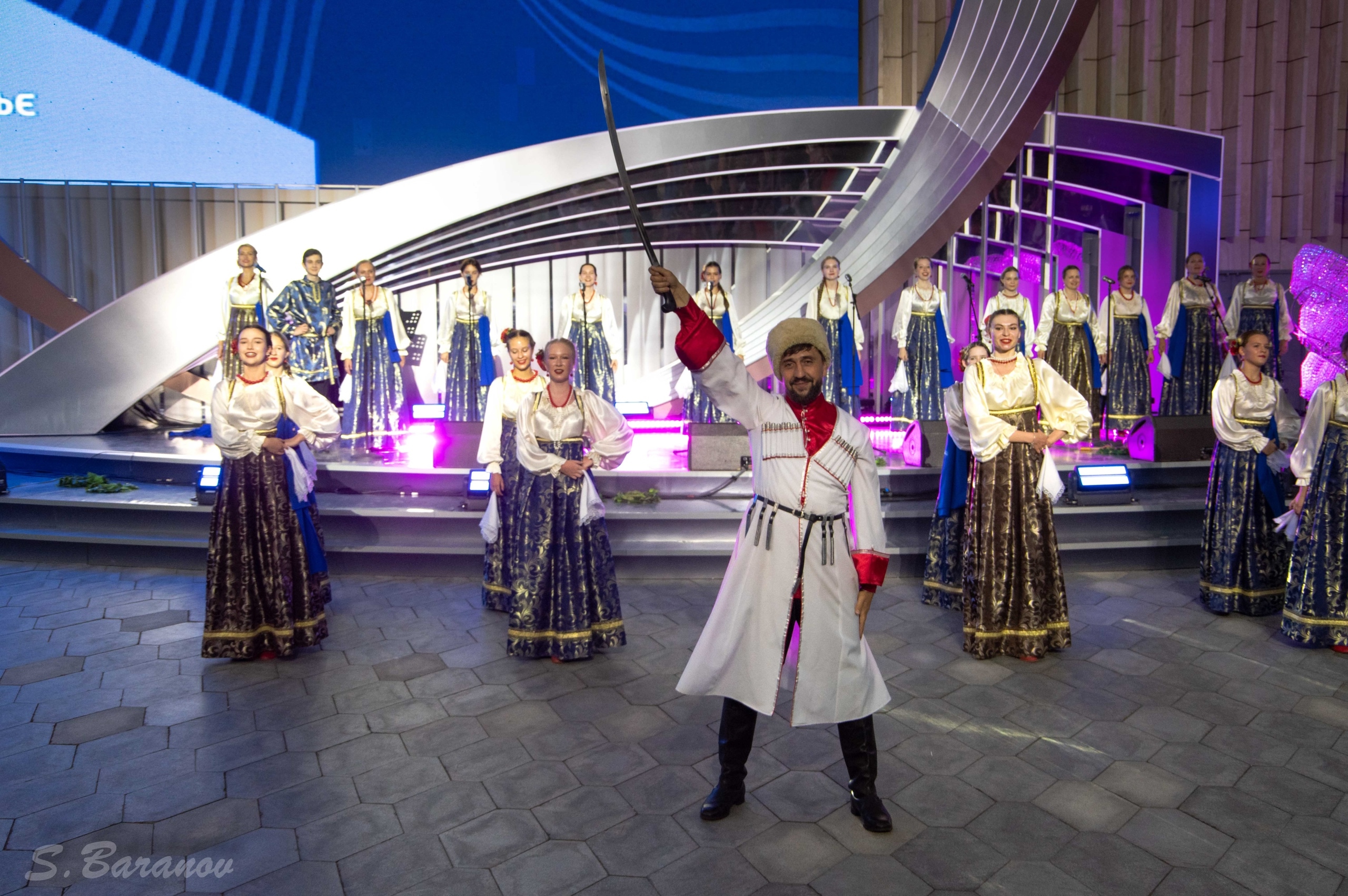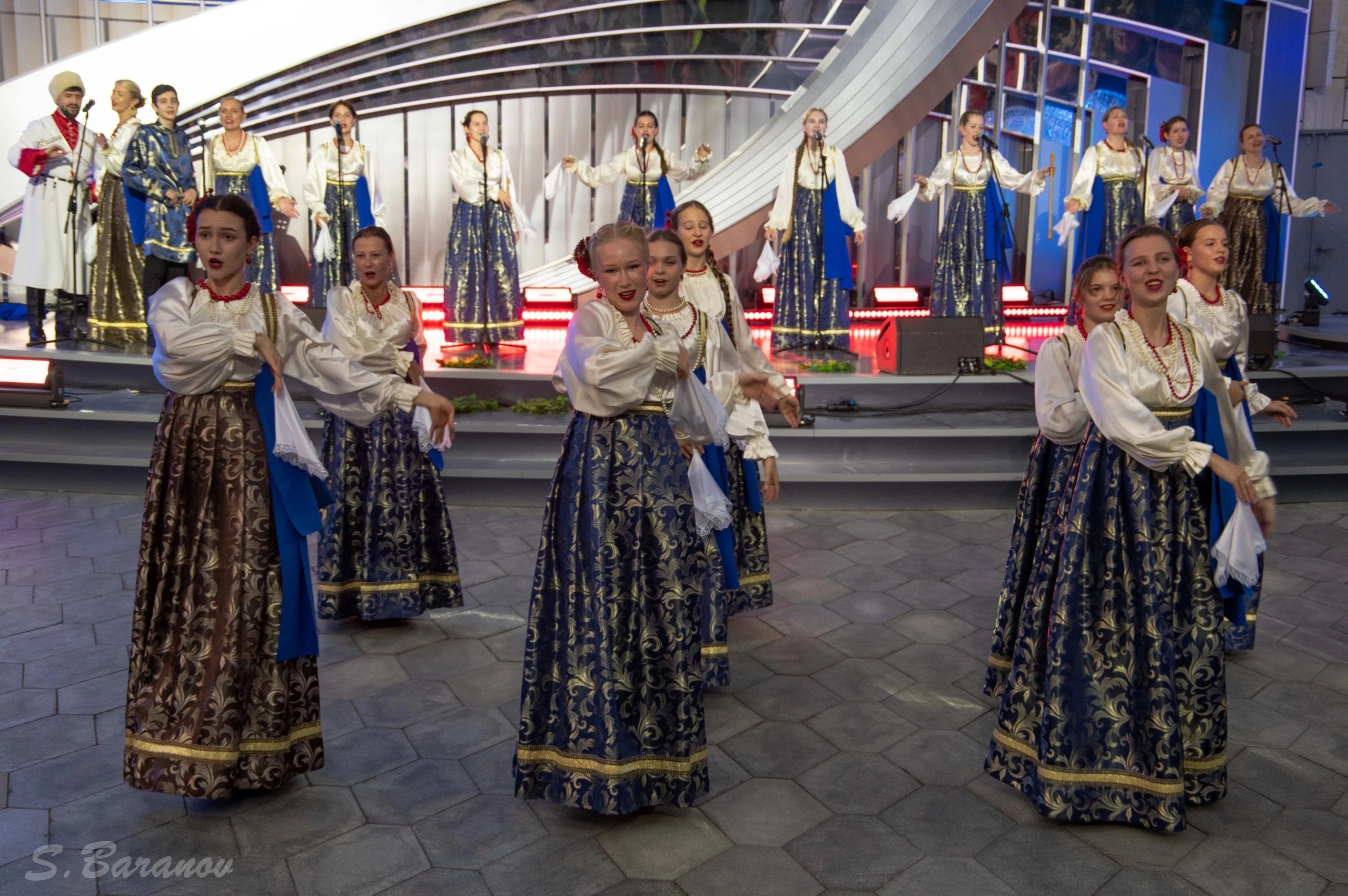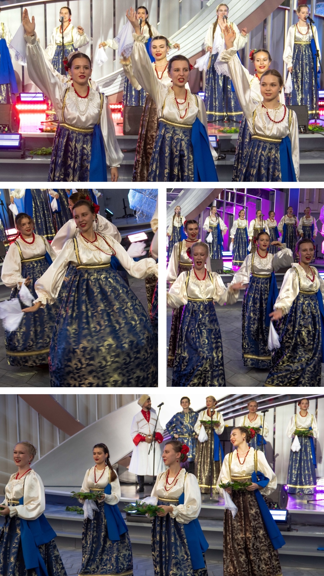 В праздничный день артисты Московского городского творческого коллектива «Театр народной музыки «Иван да Марья» радовали жителей и гостей города вокально-хореографическими композициями. Выступление в рамках городской акции «Флаг Родины-символ величия» прошло на площадке СП «Зюзино».